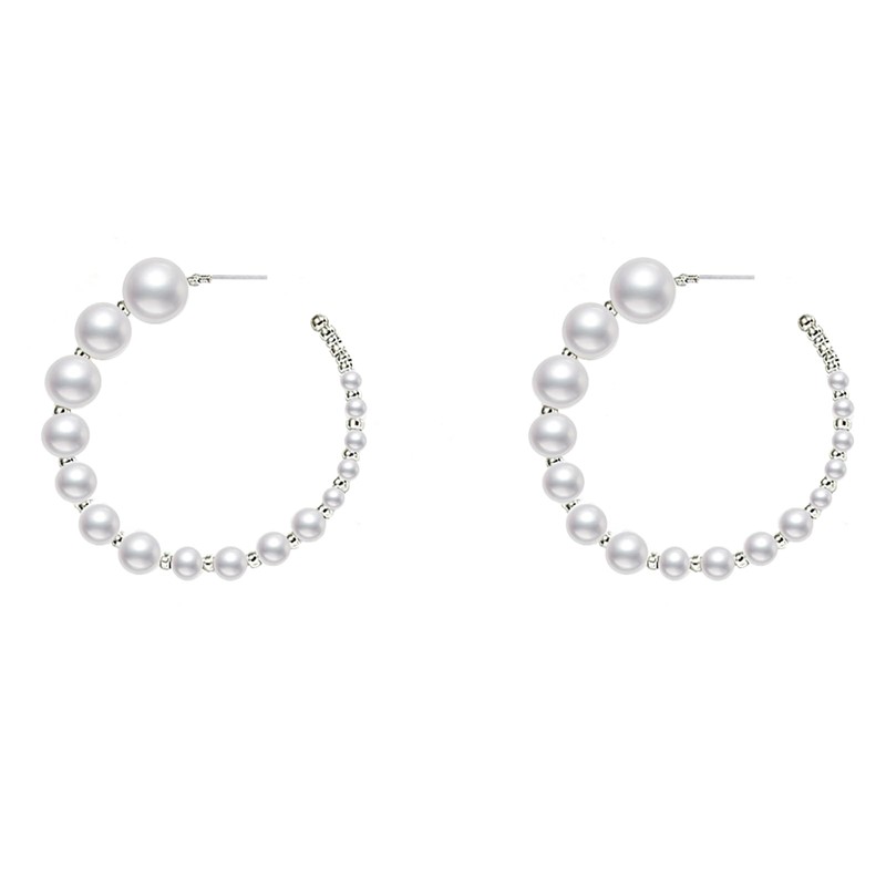 Aloluo Pearl Big Hoop Stud Earring for Women Girls Silver Gold Imitation Pearl Ball Bead C Shaped Round Circle Geometry Earring Wedding Christmas Valentine's Day Jewelry Gifts for Wife Girlfriend, Metal, No Gemstone
