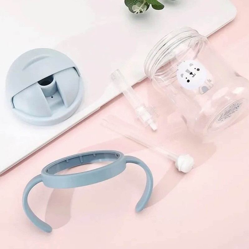 Alomejor 250 ml Weighted Straw Sippy Cup Animal Pattern Leak Proof for Infants Handle Flip Cup for Children Blue