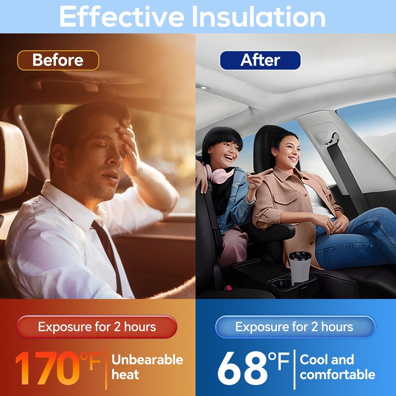 - 【Upgraded Fabric】Newly thicker fabric makes it anti-wrinkle, no light transmission; High-density fabric ice factor effectively blocks heat and UV rays to maintain a comfortable temperature inside the car