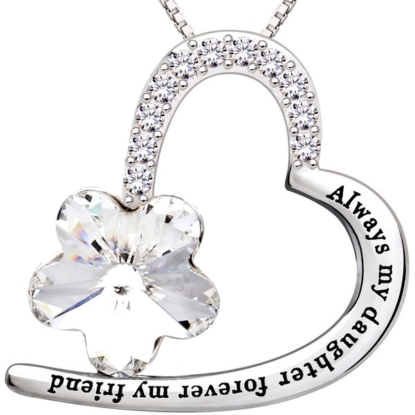ALOV Jewelry Sterling Silver "Always my daughter forever my friend" Love Heart Crystal Cubic Zirconia Pendant Necklace