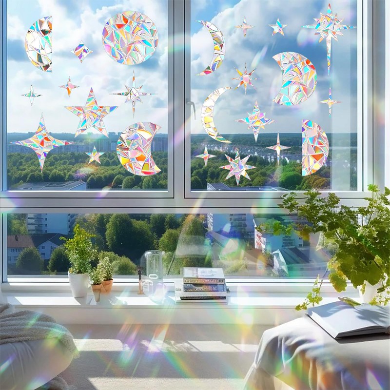 - These sun catcher window stickers are made of prism window film, you can capture sunlight and transform it into amazing rainbows for your room.