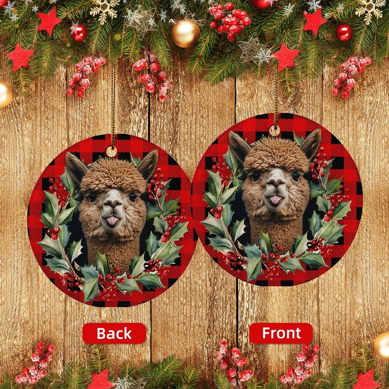 Alpaca Llama Ornaments for Christmas Tree, 1Pcs Ceramic Christmas Ornaments Red, Christmas Tree Hanging Decor