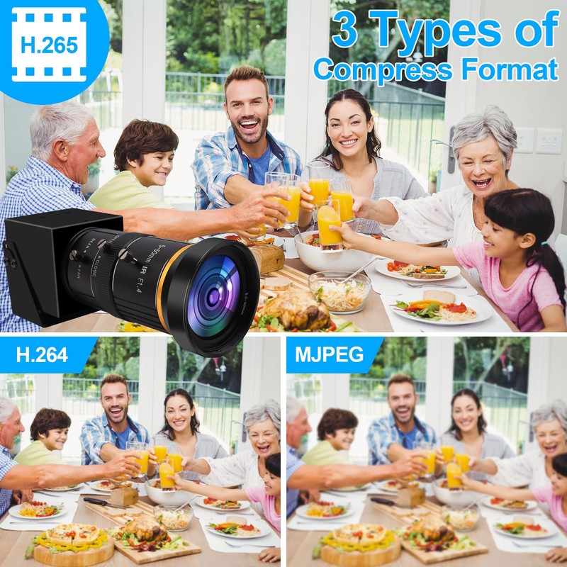 • High Compatiable:4K usb camera compatible with Win XP/Vista/Win7/Win8/Win10/Win11etc,Linux with UVC,Mac-OS X 10.4.8 or later.H.265/H.264/MJPEG/YUY2 compression format optional
