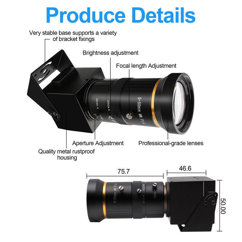 • Sony IMX415 Sensor:4K usb webcam adopt high quality 1/2.8" Sony IMX415 Color CMOS Image Sensor.Support 2X digital Zoom for super clear details images. Widely used in the research, technical or hobby projects, etc.