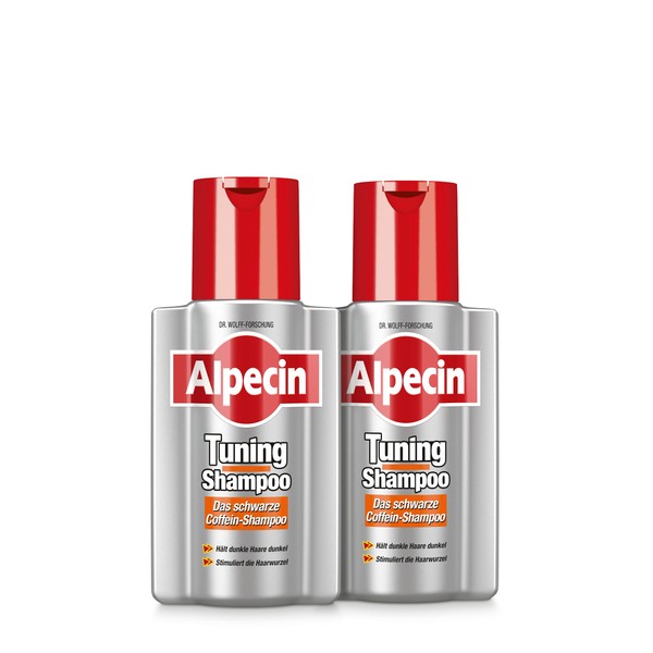 Alpecin Tuning Shampoo - 2 x 200 ml - The Black Caffeine Shampoo for Grey Hair | Strong Colour Pigments Keep Dark Hair Dark