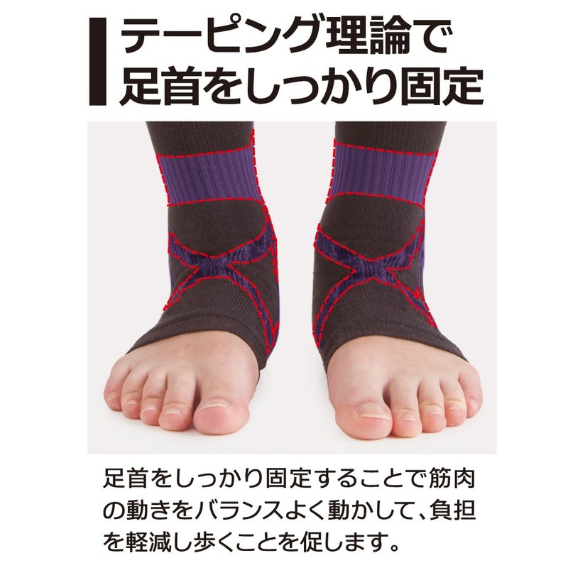 - (Taping Theory Secures Ankles Firmly in Place) By securing the ankle firmly to balance the movement of the muscles, reducing burden and encouraging walking