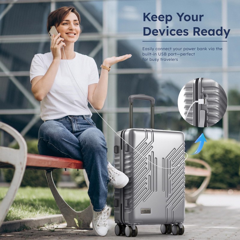 ALPHA CAMP 20-inch Carry On Luggage Airline Approved - PC+ABS Lightweight Suitcase with Built-in TSA Lock,Hard-shell Durable Rolling Luggage with USB Port