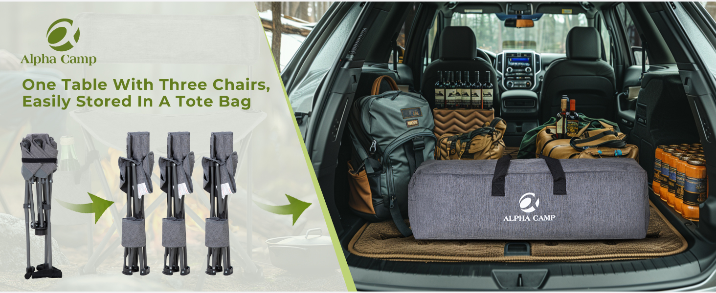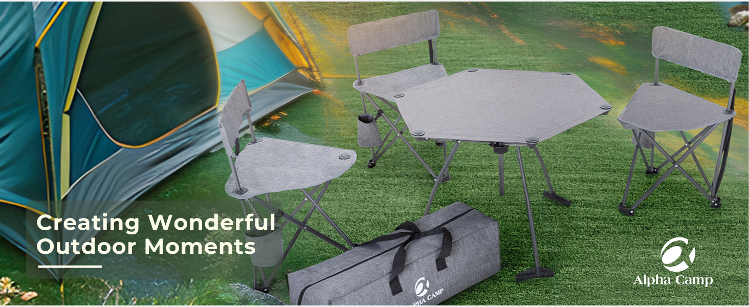 ALPHA CAMP Portable Camping Chairs and Table Set of 4 Tripod Stool & Lightweight Camp Table