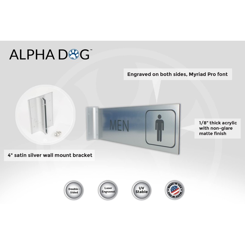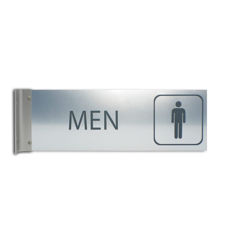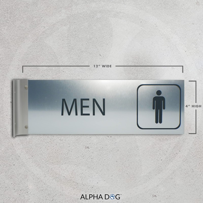 ALPHA DOG SIGNS Men's Restroom Hallway Bathroom Sign, 4"x12" Double-Sided Business Wayfinding Nameplate, Indoor Outdoor, Easy Install, Durable, Made in USA (Brushed Stainless)