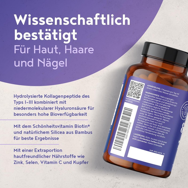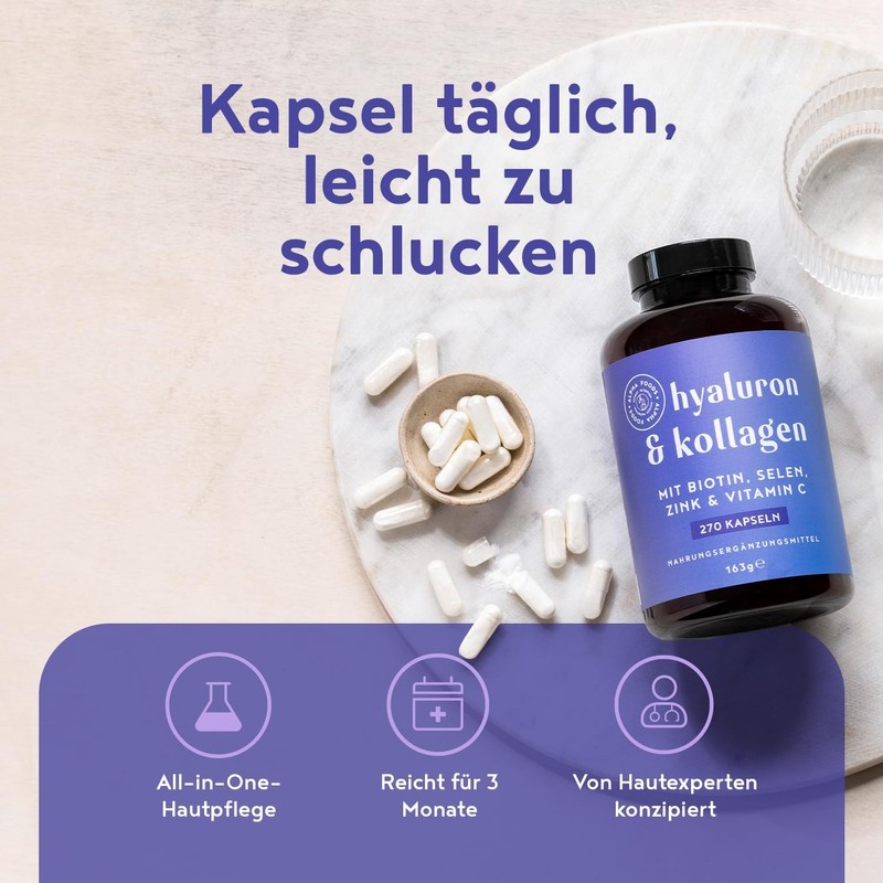 Perfect Beauty Formula: Each serving (3 capsules) contains 1000mg hydrolyzed collagen, 200mg hyaluronic acid, plus biotin, zinc, selenium, vitamin C, copper, and bamboo extract to support healthy skin, hair, and nails.