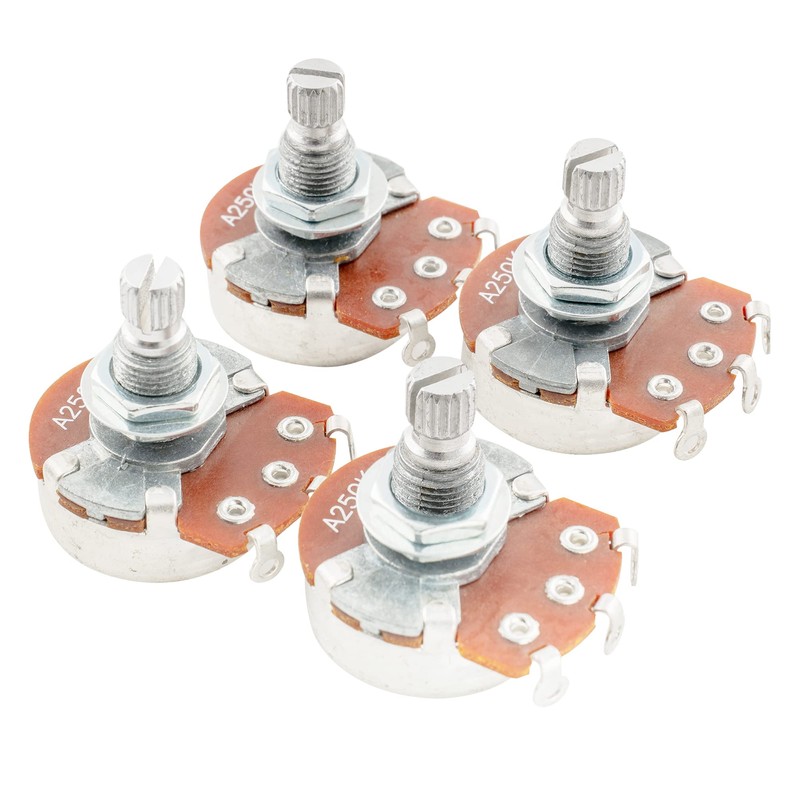 Alpha Full A250K Metric Potentiometers Split Shaft Audio Taper Pots for Electric Guitar or Bass (4 Pcs)