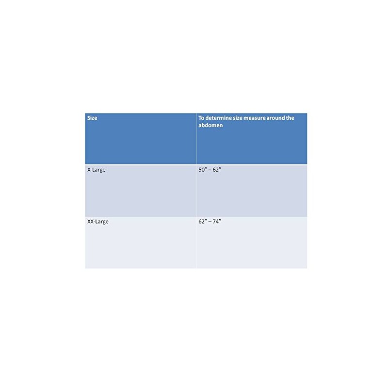The Alpha Medical Abdominal Binder is made with 6 in., 8 in., 10 in., or 12 in. wide super stretch elastic. At one end of the elastic there is a 1/8" thick X 21" long foam pad laminated (covered) with soft soothing cotton flannel. The foam pad adds rigidity, padding, and provides a non-elastic zone that helps to direct compression to the front of the abdomen. The Alpha Medical Abdominal Binder is made for many purposes and conditions; however, some of the more popular include abdominal hernia reduction, post operative, postpartum compression, after pregnancy reshaping, bariatric support, flattening and smoothing of the abdomen. **Size Guide** For correct size measure around the waist. X-Large: 50"-62" XX-Large: 62"-74"