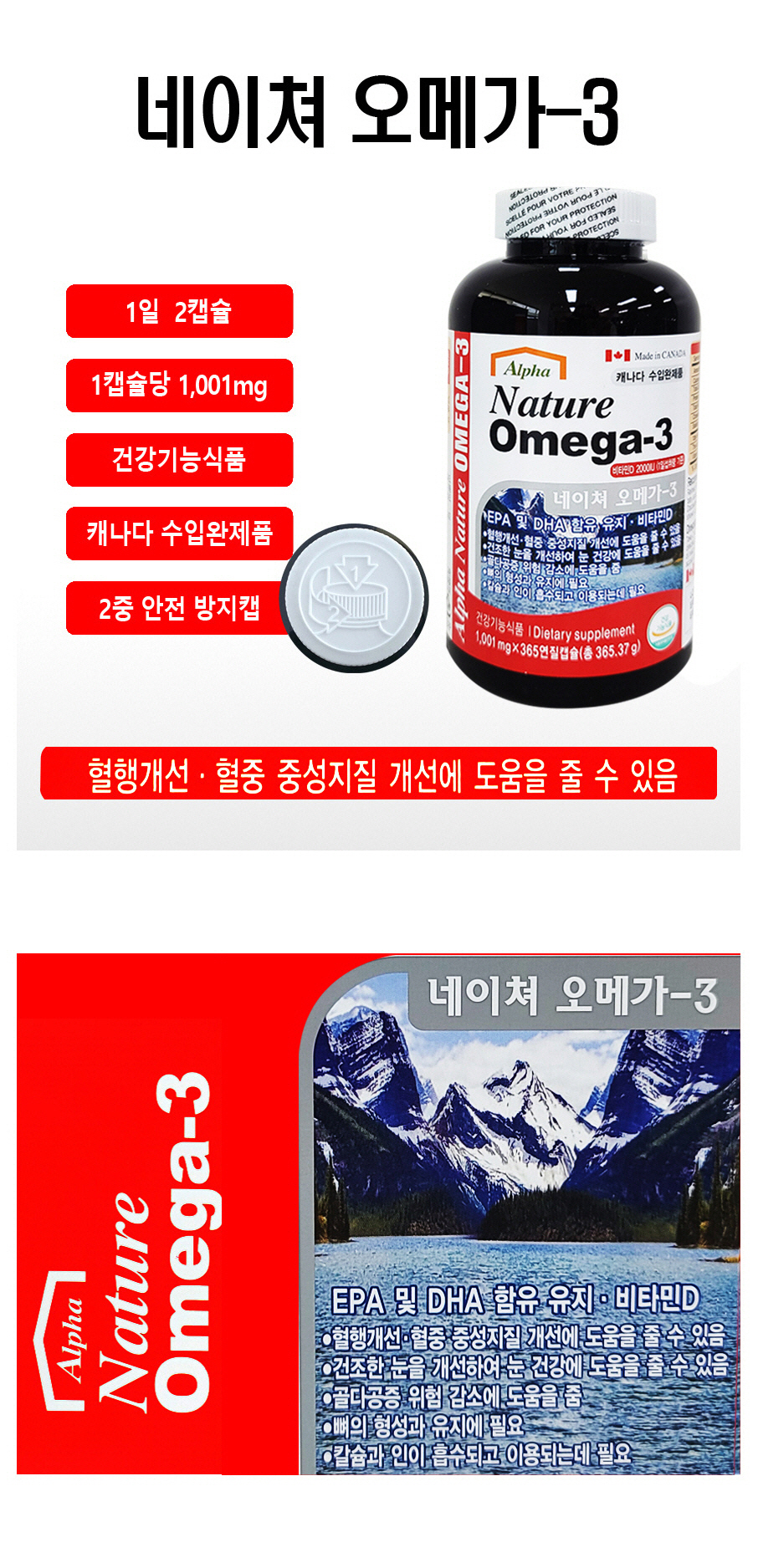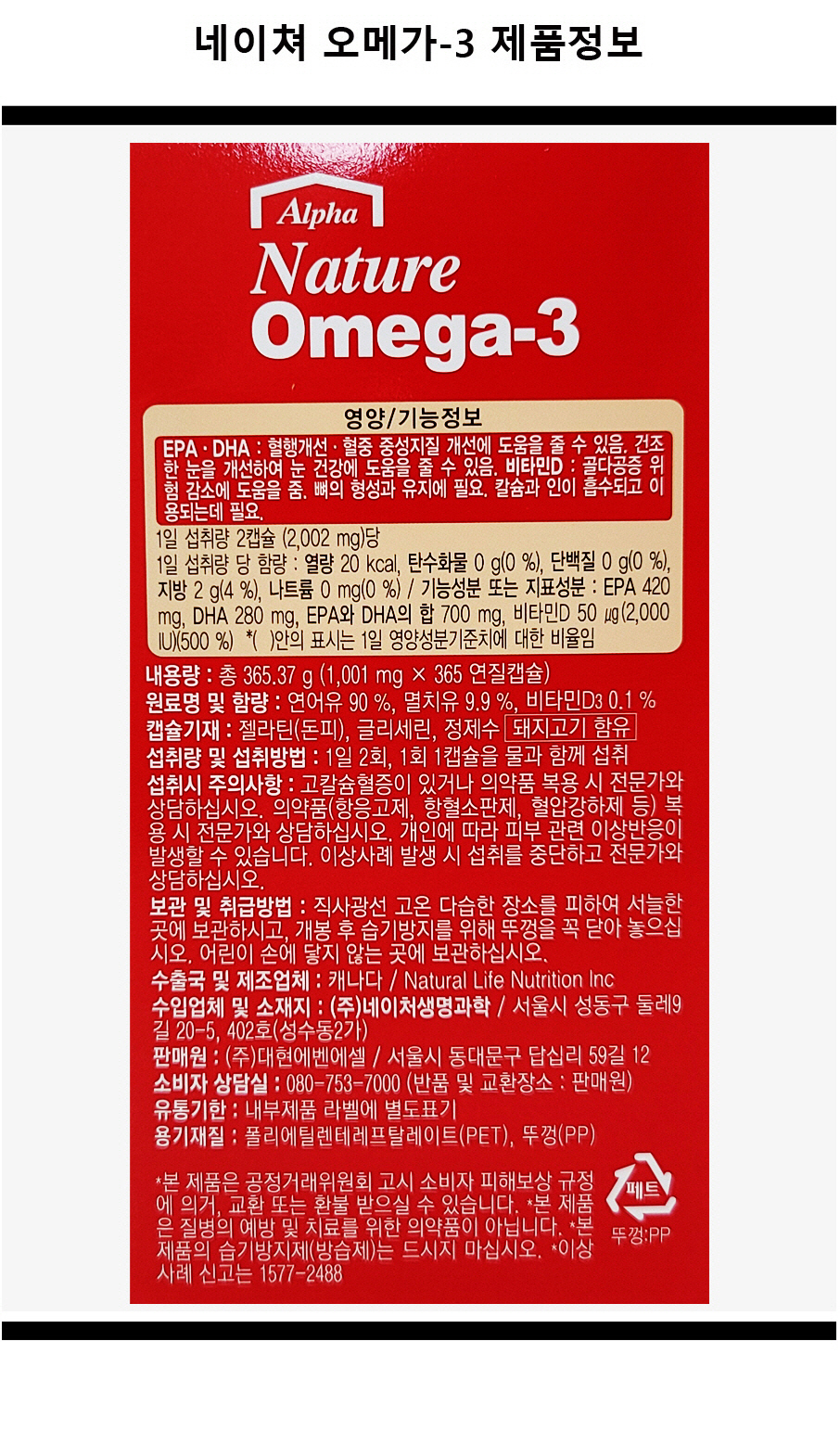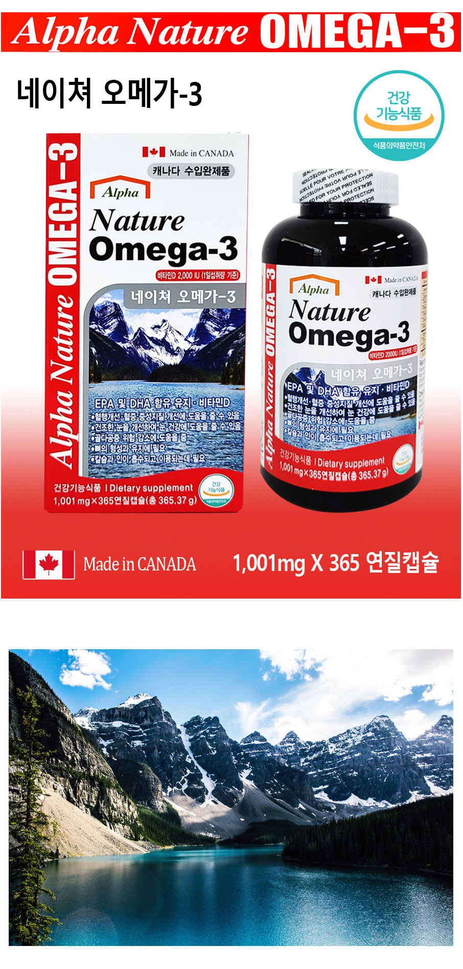 Alpha Nature Omega3 1001mg x 365 capsules, 6 months supply / 알파 네이쳐 오메가3 1001mg x 365캡슐 6개월분