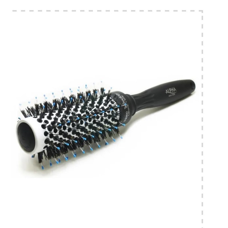 Alpha New York Ceramic Ionic Round Hair Brush, Small, White, Boar Bristles