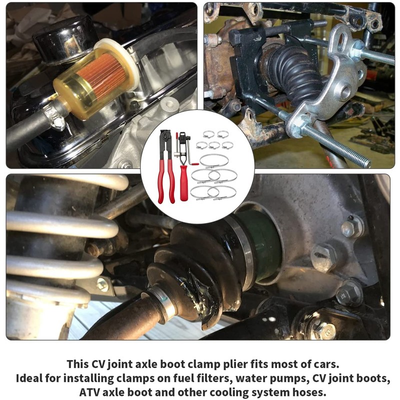 - 【Universal Fit】Ideal for installing clamps on fuel filters, water pumps, CV collars, ATV axle boots and other cooling system hoses. These CV Joint CV Joint CV Boot Boot Pliers fit most cars.