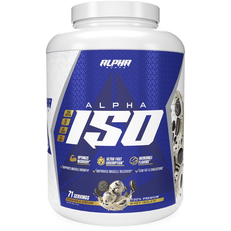 Alpha Supps ISO, Low Carb 100% Whey Protein Isolate Powder, 25 Grams Per Serving, Helps Support Muscle Growth, Low Sugar and Gluten Free (Cookies & Cream, 5 lb)