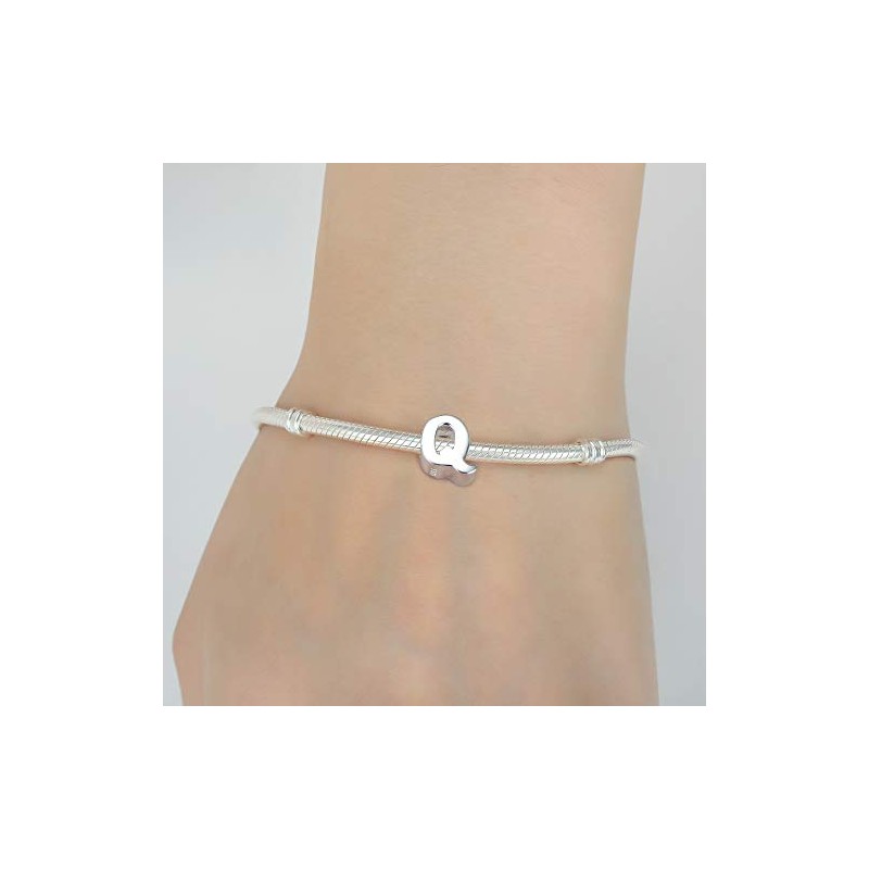 Alphabet Charms Letter Charms Solid 925 Sterling Silver Initial A-Z Letter Charms Beads fits Bracelets & Necklaces for Christmas Mothers Gifts (Q)