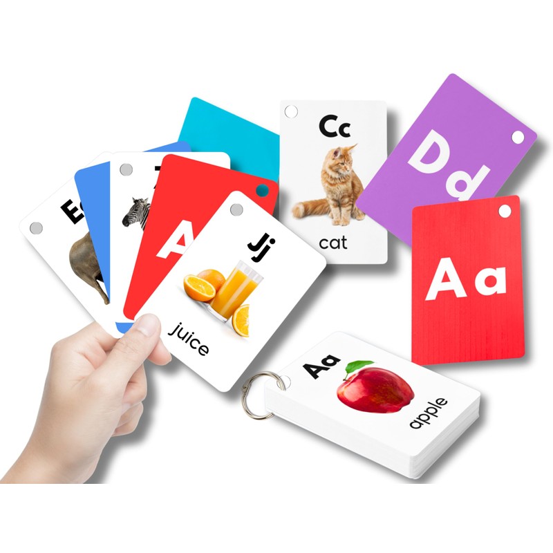 - Teach Your Child the ABCs in a Fun, Interactive Way With These Colorful Alphabet Flash Cards! Double sided cards feature upper and lowercase letters, plus engaging images to help with word association