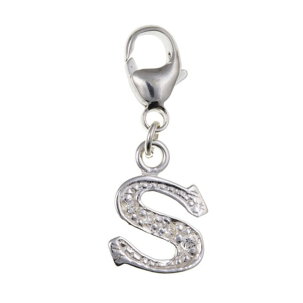 Alphabet/Initial Letter S Sterling Silver Clip-On Charm With Sparkly CZ Stones/Alphabet Silver Charm - for Thomas Sabo Style Charm Bracelets - Letter Jewellery