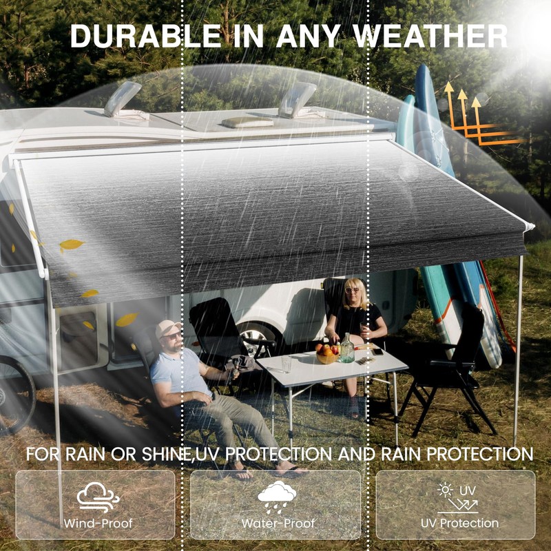 • [Ultimate Weather Protection] Our rv Awning fabric replacement with UPF 50+ blocks 95%+ of harsh sun rays and withstands up to water pressure to 2506mm, the camper Awning help you stay cool and comfortable in all weather.