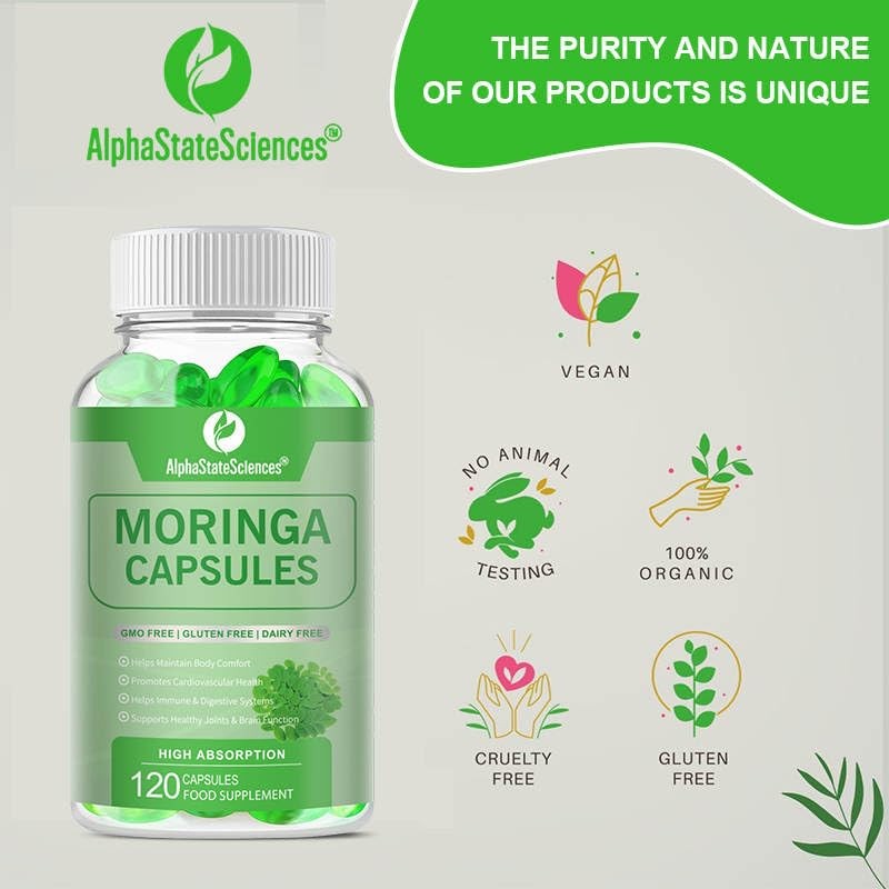 - SUSTAINED ENERGY AND VITALITY: Moringa is a natural energy booster, containing essential nutrients like iron and B-Vitamins, which help combat fatigue and increase overall vatality. Regular consumption of Moringa may lead to sustained energy levels throughout the day, promoting productivity and well-being