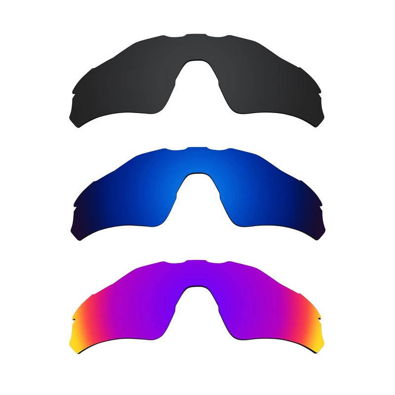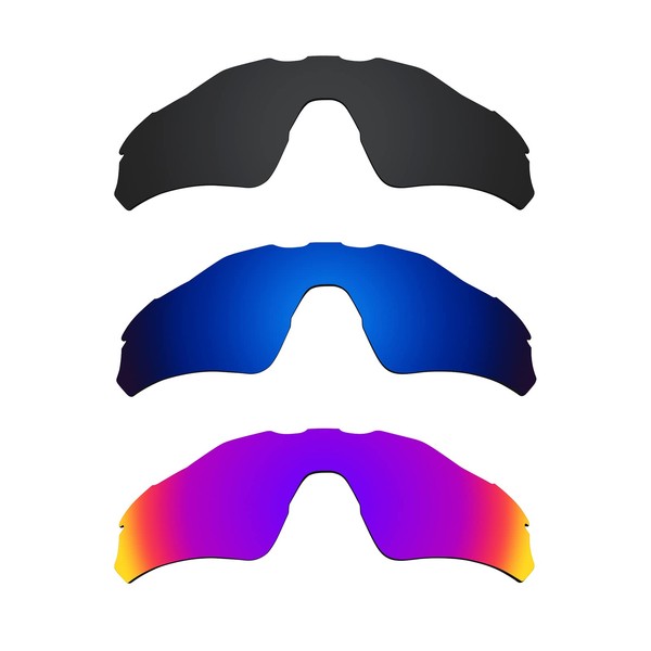 Alphax 3 Pair Polarized Replacement Lenses for Oakley Radar EV Path OO9208 - Black+Deep Water+Midnight Sun