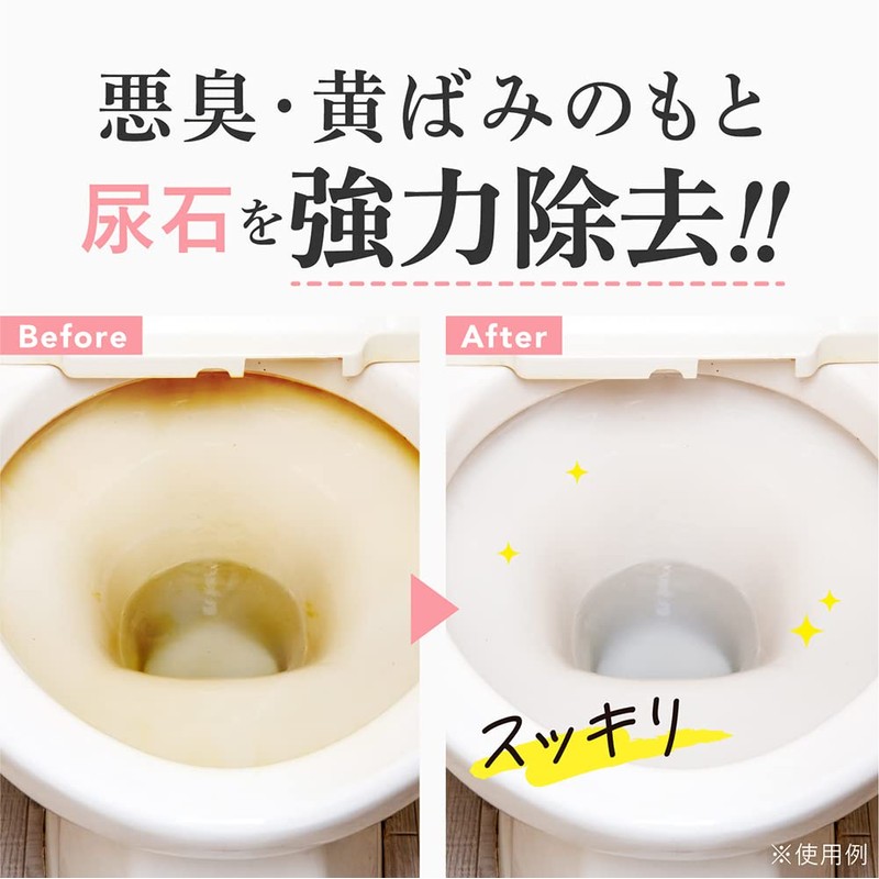 - The urine stone will shine under the smell and yellow that has been given up. The gel type is designed to be placed on the back of the edge, and it reduces the number of cleaning times. Tube type urine stone remover with no rubbing