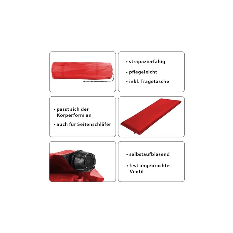 EIGENSCHAFTEN √ strapazierfähig * pflegeleicht – kann feucht abgewischt werden * kompakt zu verstauen – zusammengerollt sehr platzsparend * Ventil kann nicht abgedreht werden - kein Verlust von Kleinteilen * keine Luftpumpe notwendig