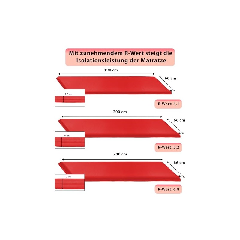KOMPAKT √ 190 x 60 x 2,5 cm * Packmaß: 61 x 14 cm * Gewicht: 1.196 g / / 200 x 66 x 6 cm * Packmaß: 65 x 19 cm * Gewicht: 2.162 g // 200 x 66 x 10 cm * Packmaß: 65 x 23 cm * Gewicht: 3.119 g