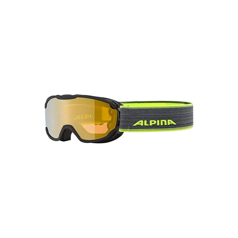 ALPINA PHEOS JR. Q-LITE Mirrored, Contrast-Enhancing Ski Goggles with 100% UV Protection for Children, Black/Neon Yellow, One Size