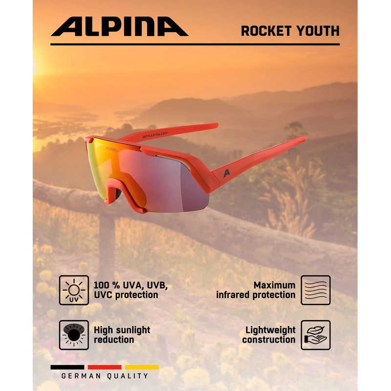 ALPINA Rock Youth Mirrored and Shatterproof Sports and Cycling Glasses with 100% UV Protection for Children, Pumkin Orange Matt, One Size