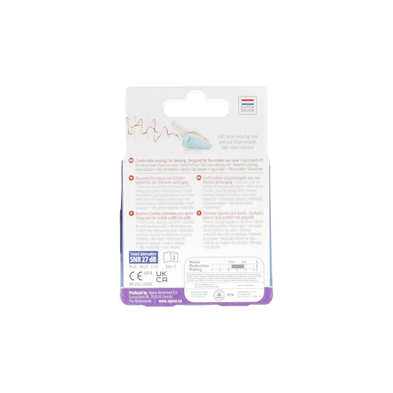 Alpine Alpine SleepDeep Mini - Soft Ear Plugs for Sleeping and Concentration - New 3D Oval Shape and Noise Reducing Gel for Better Attenuation - 27dB - Ideal for Side Sleeper - 1-Pair Reusable: S