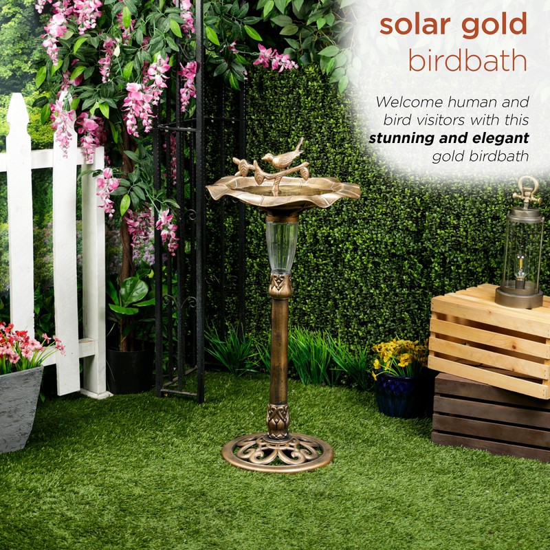 - Functional Birdbath with LED Light:The Alpine Corporation Solar Gold Birdbath serves as a functional and visually appealing birdbath while incorporating a white LED light, creating a dual-purpose garden accent for both day and night.