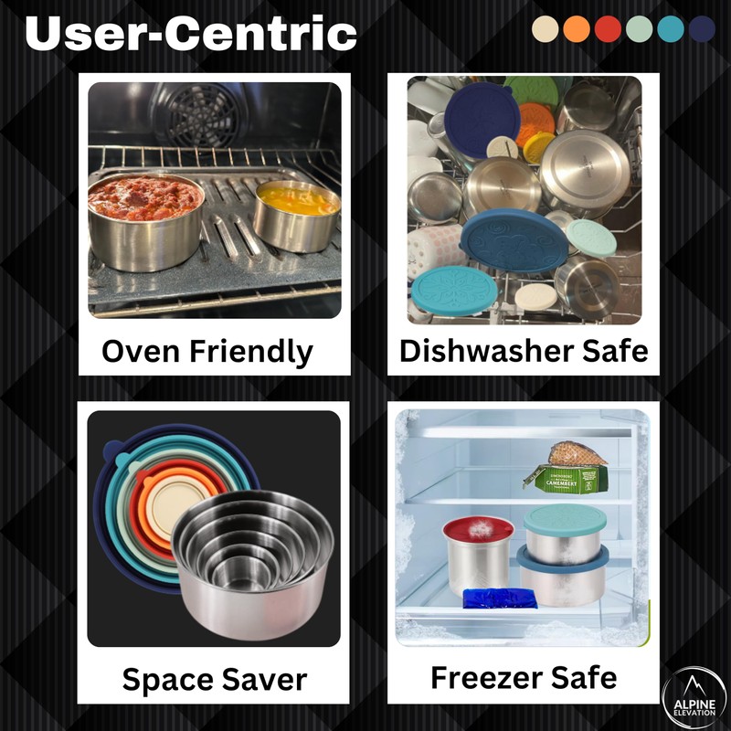 - Ease of Use: Alpine Elevation's stainless steel containers with lids are fridge, freezer, and top-rack dishwasher safe. Their smooth design prevents food from sticking, making cleanup a breeze!