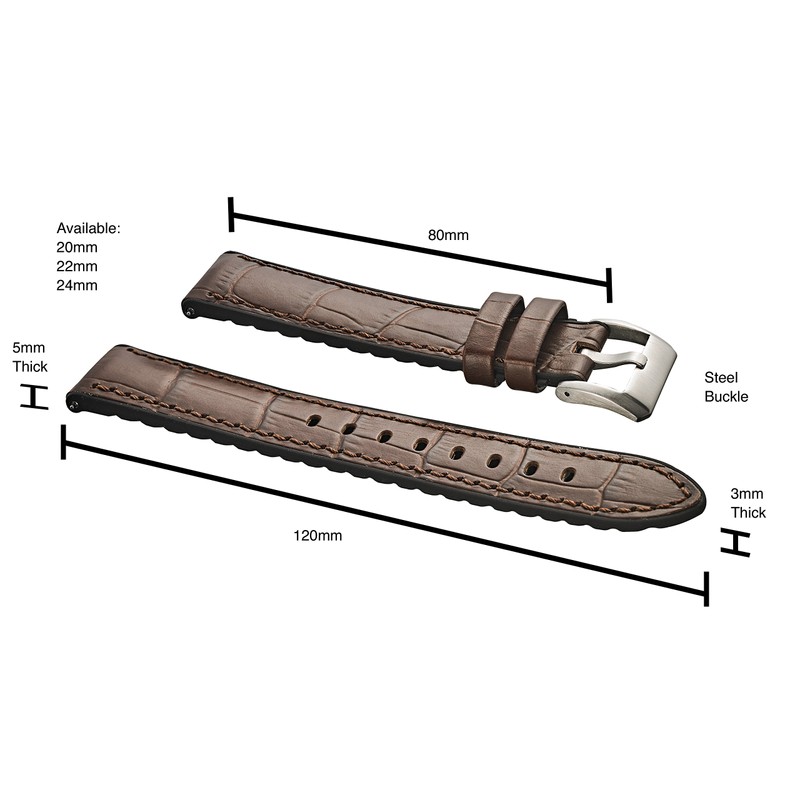 - Watch Band Taper: Watch Lug size x Size of Buckle: 22mm X 20mm, 24mm X 22mm