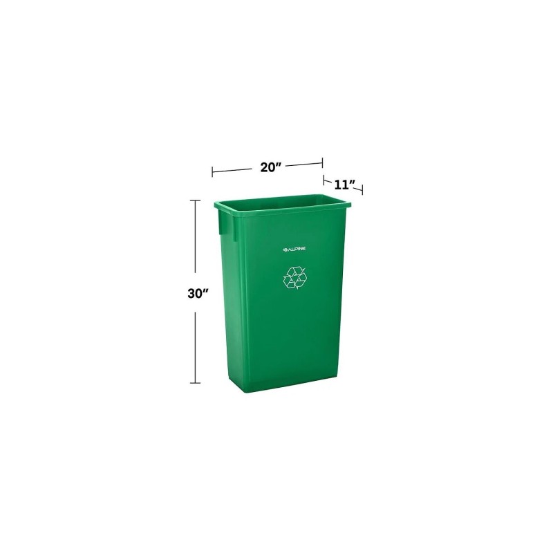 Alpine Industries Polypropylene Recycling Bin with Swing Lid and Dolly 23-Gallon
