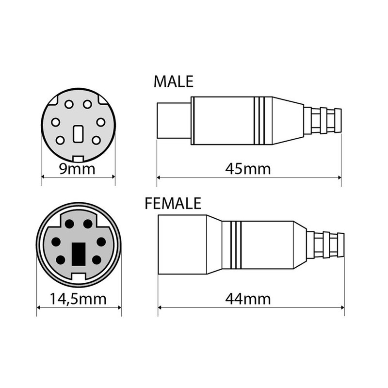 Male and female 6-pin mini DIN PS/2 connector plug and socket Alpine camera direct connection