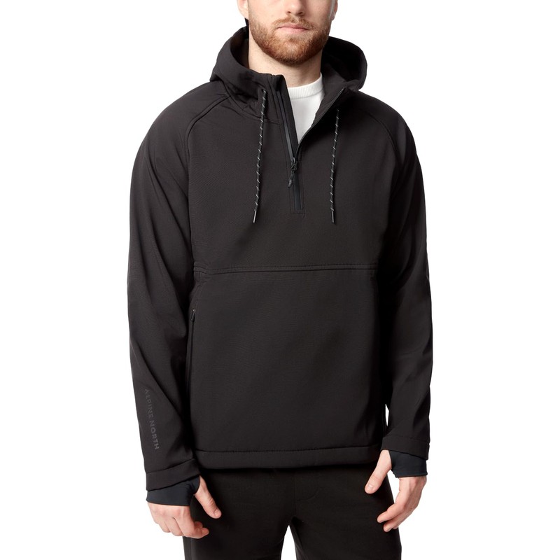 ALPINE NORTH Vargas Men's Anorak Softshell Jacket, Waterproof Windproof Pullover Heavyweight Hoodies (Black, Large)