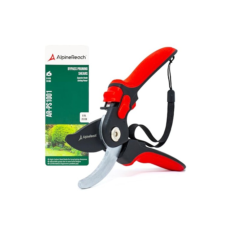AlpineReach Bypass Secateurs for Gardening, Sharp Ergonomic Pruning Shears, Heavy Duty High Carbon Steel Blade Plant Cutting Pruner Clippers, Adjustable Soft Handle for Small & Large Hands, Gift