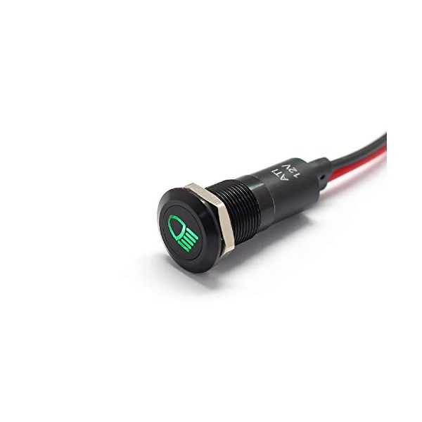 Alpinetech PLB12MS 12mm 1/2" 12V LED Metal Signal Indicator Pilot Dash Light (Low Beam)