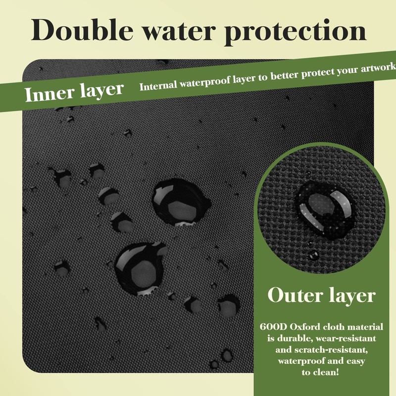 Waterproof and wear-resistant material, a heavy-duty zipper, can help you carry artwork, sketchbooks, poster storage, frames, and other bulky items.