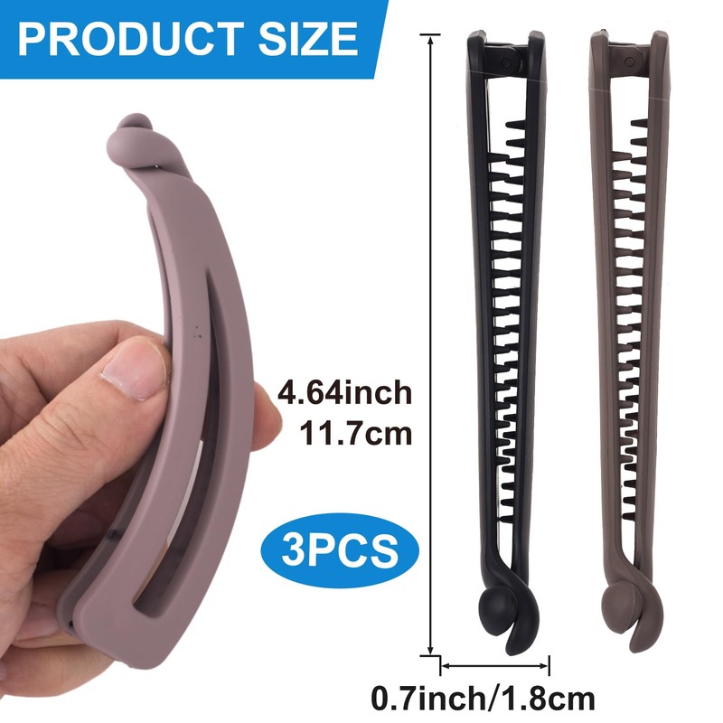 - Package Contents: You’ll receive 3 pieces of banana hair clips in black, purple, and brown. Sufficient for daily use, allowing you to choose the color that suits your outfit