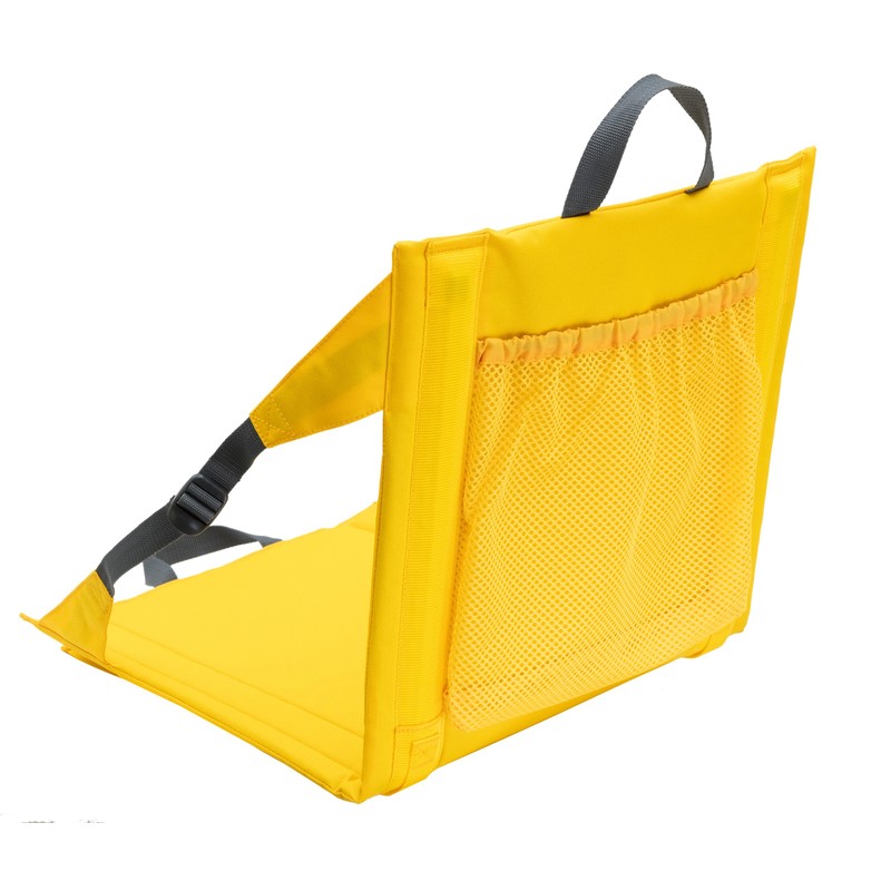 - Lightweight and packable stadium seat/chair with webbing handles for easy transport