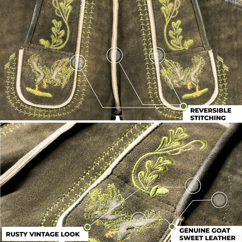 • PREMIUM QUALITY LEATHER: These traditional Oktoberfest Mens Costume are made from 100% genuine goat leather, built to stand the test of time. We obtain our organic leather from selected tanneries that still value honest craftsmanship.