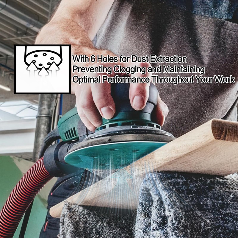 ALPXUXP Sandpaper 150 mm Velcro 100 Grit 6-Hole Sanding Discs Professional for Round Orbital Sanders (Pack of 50)