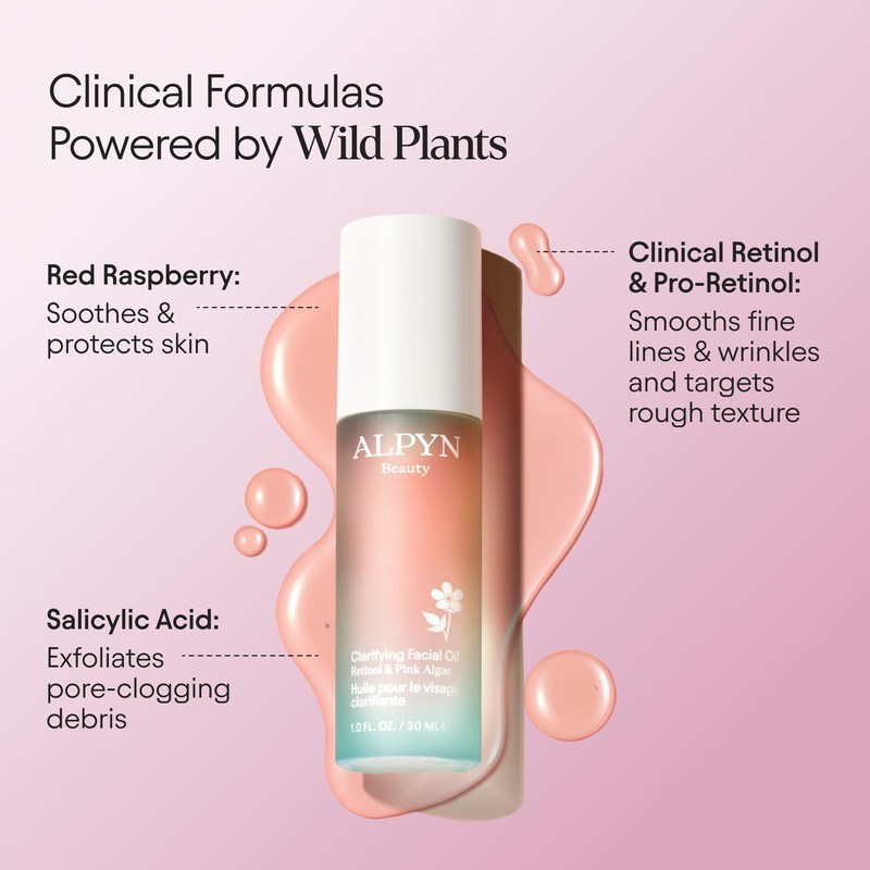 Alpyn Clarifying Facial Oil with Retinol & Pink Algae | Clear Congestion, Smooth Fine Lines, Improve Texture & Glow | 1 Fl Oz / 30 ml