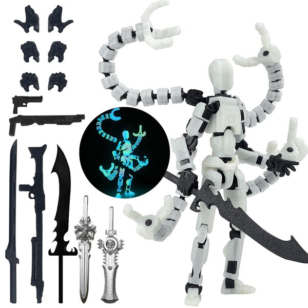 Already Assembled T13 Action Figure Accessories,T13 Multi-Jointed Movable,for Collectors Desktop Decorations t-13 Movability 3D Printed Toys (Luminous, 5.5inch)