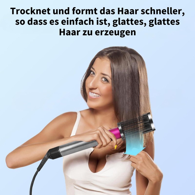 - Effizientes Styling: Die Glättungsbürste ist perfekt für schwer zu bändigendes, grobes Haar. Es reduziert Kräuseln und sorgt für glattere Ergebnisse, sodass das Haar professioneller und glänzender aussieht. Der Airwrap-Aufsatz verbessert das Styling-Ergebnis und spart Zeit.
