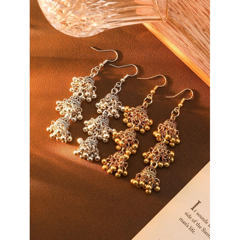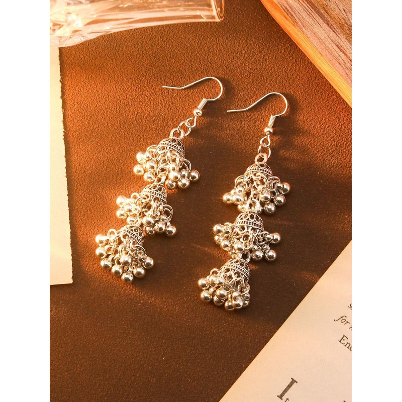 - Traditional Indian Design: Features classic jhumka silhouette with intricate patterns and dangling elements that highlight a timeless ethnic style