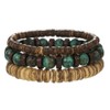 ALRNBY Mens Beaded Bracelet Wooden Bead Bracelet Set Stackable Elastic Cross Bracelet Black Brown Bead Adjustable Size (3PCS-Turquoise)